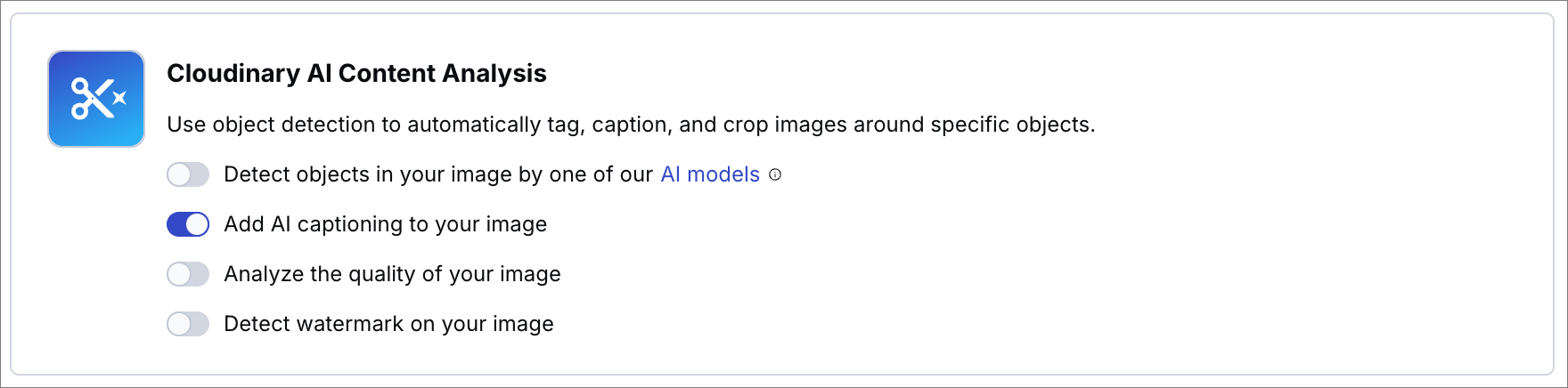 - Subscribe to the Cloudinary AI Content Analysis add-on.