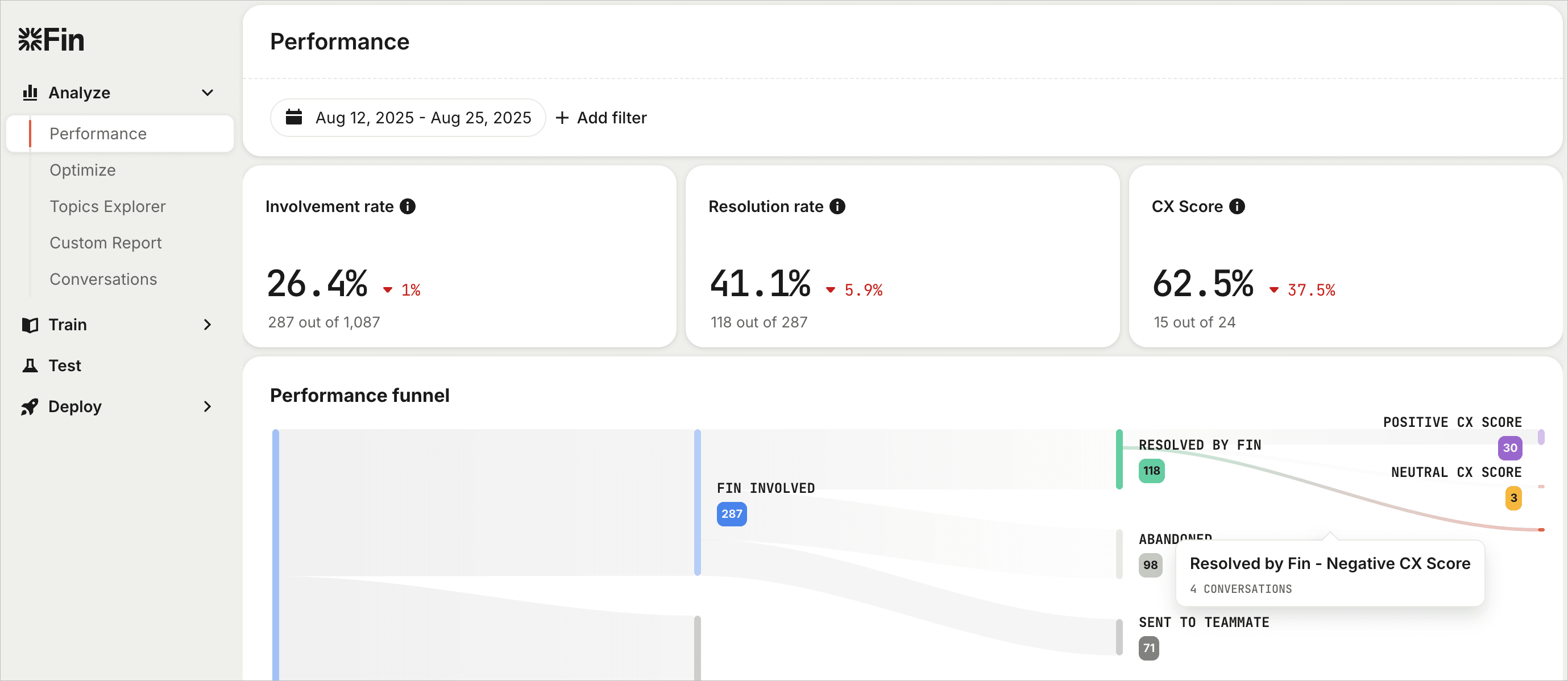 option, e.g.: Take a look at the HTML that's produced to try and understand the conversations and form your own opinions about what could have been improved (docs or Fin guidance).