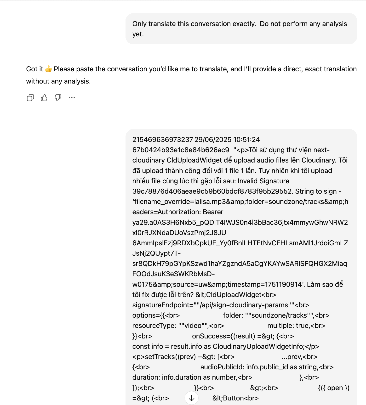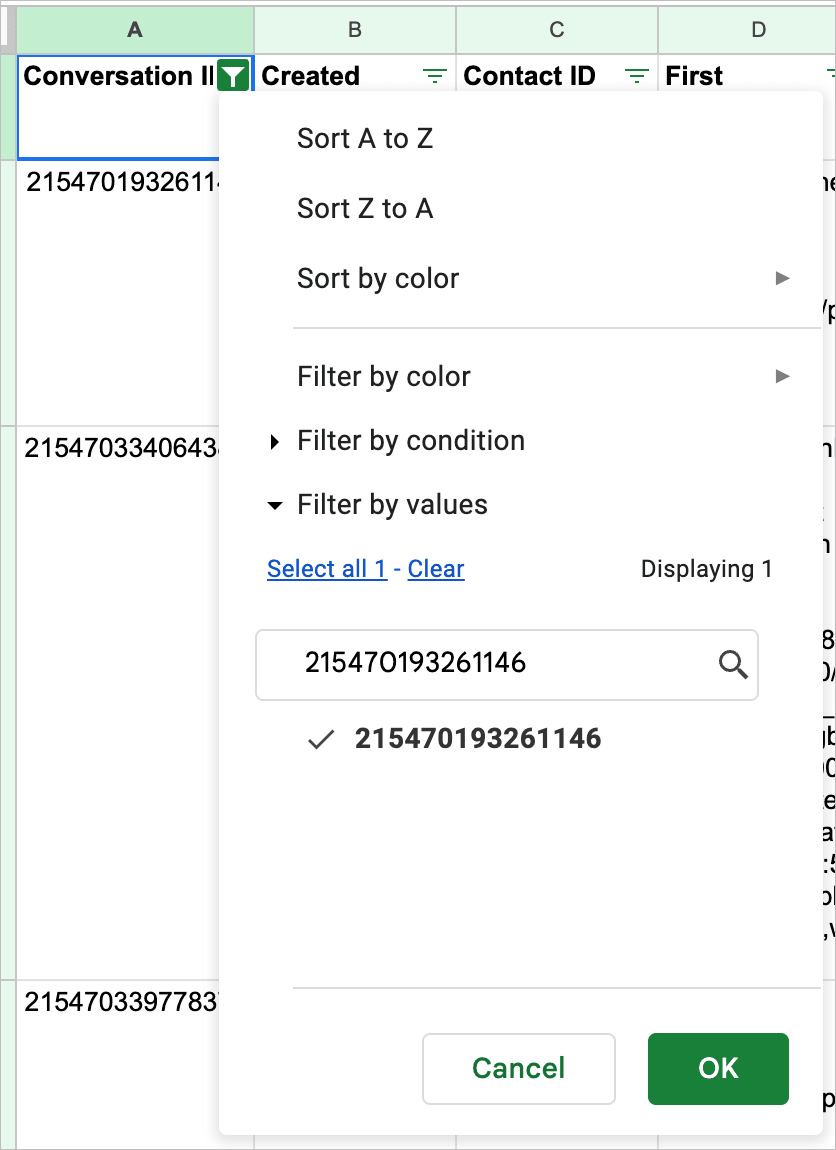 - If a conversation needs translating, either try using Gemini in the spreadsheet, or in the GPT use the following prompt: "Only translate this conversation exactly. Do not perform any analysis yet." Copy the conversation row from fin_conversations.csv (filter on Conversation ID)