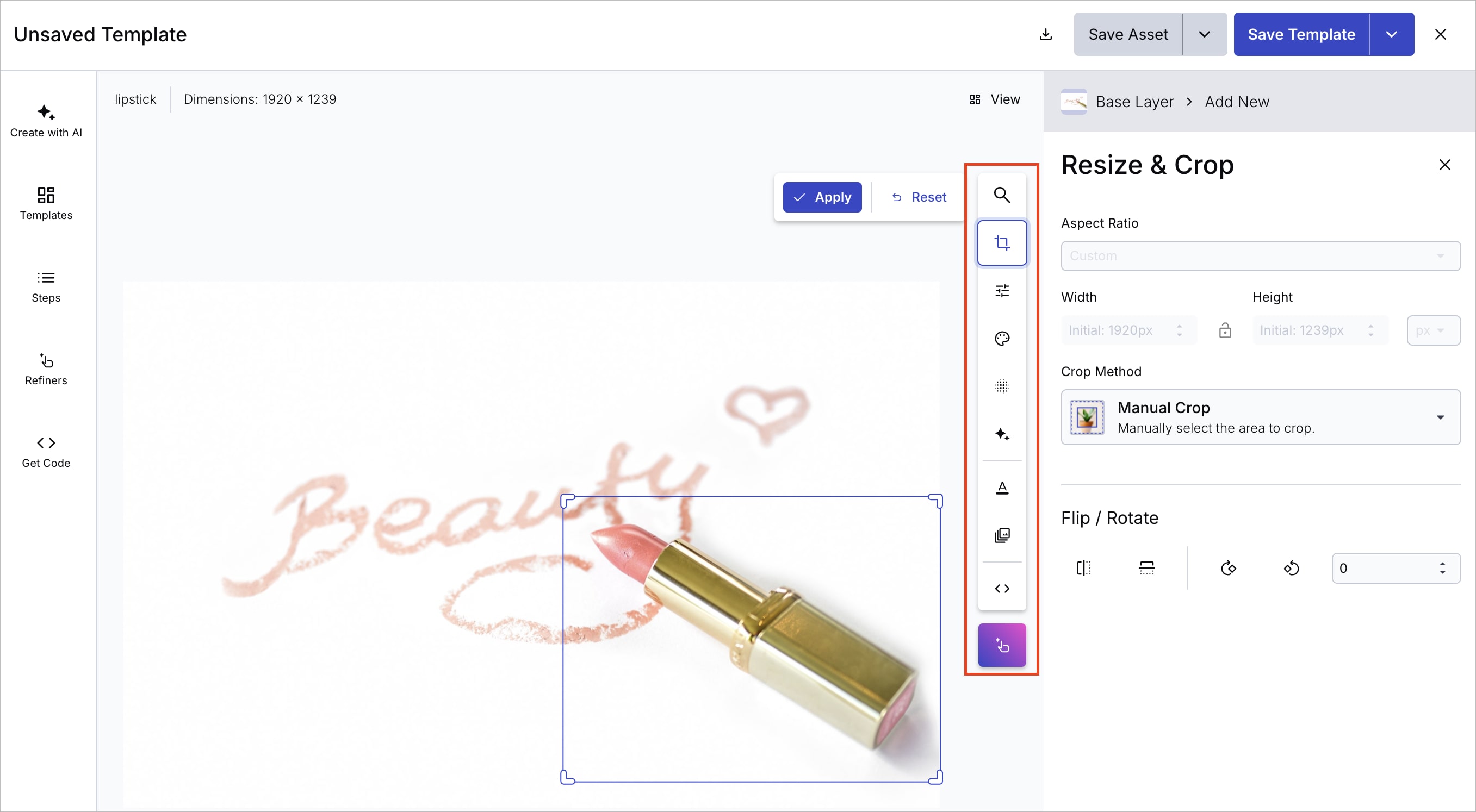 - Resize & Crop: Change the dimensions of your image by scaling, cropping to specific aspect ratios, or extracting regions of interest, and flip or rotate your image.
