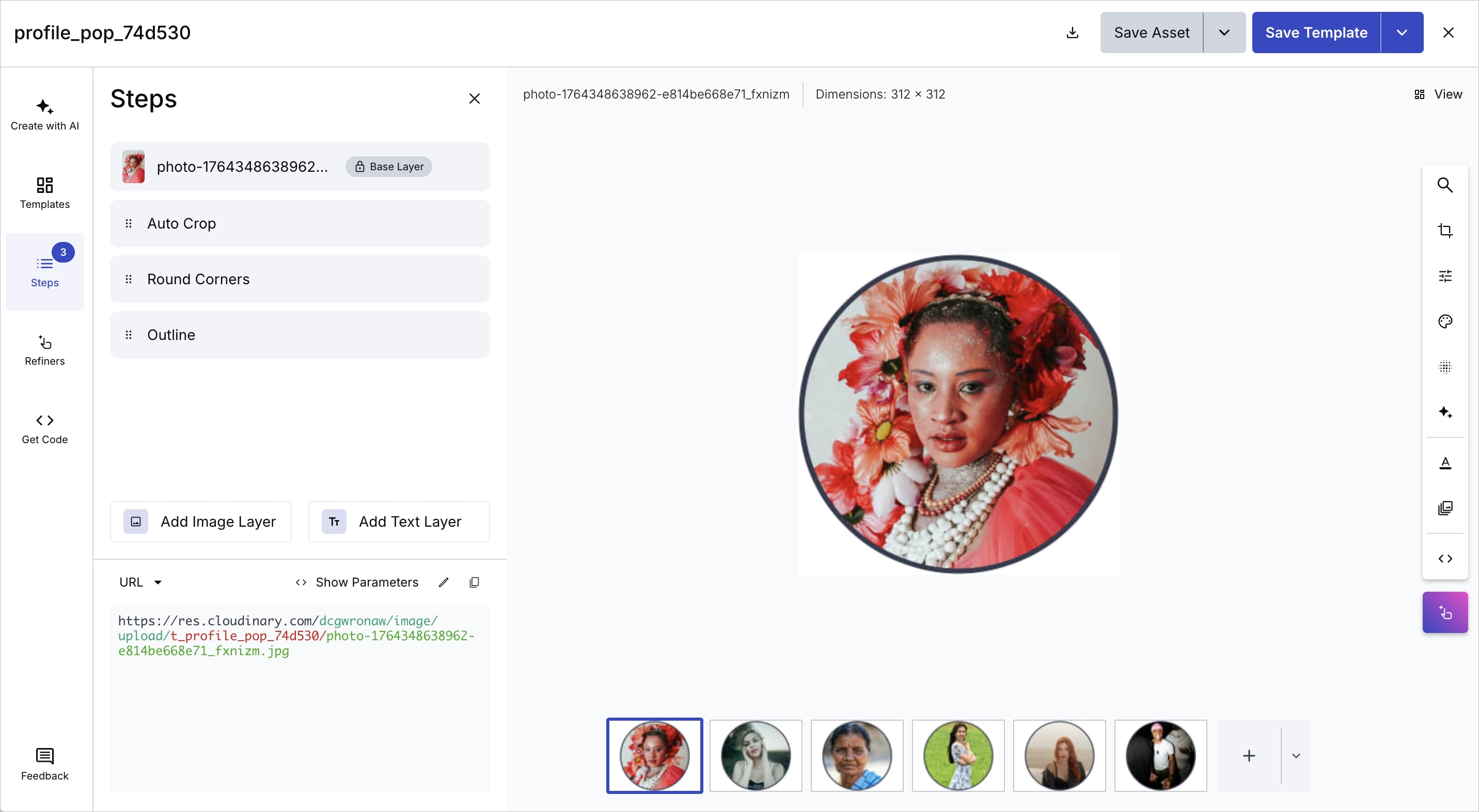 You can also download the transformed image regardless of whether you've saved the asset or template.