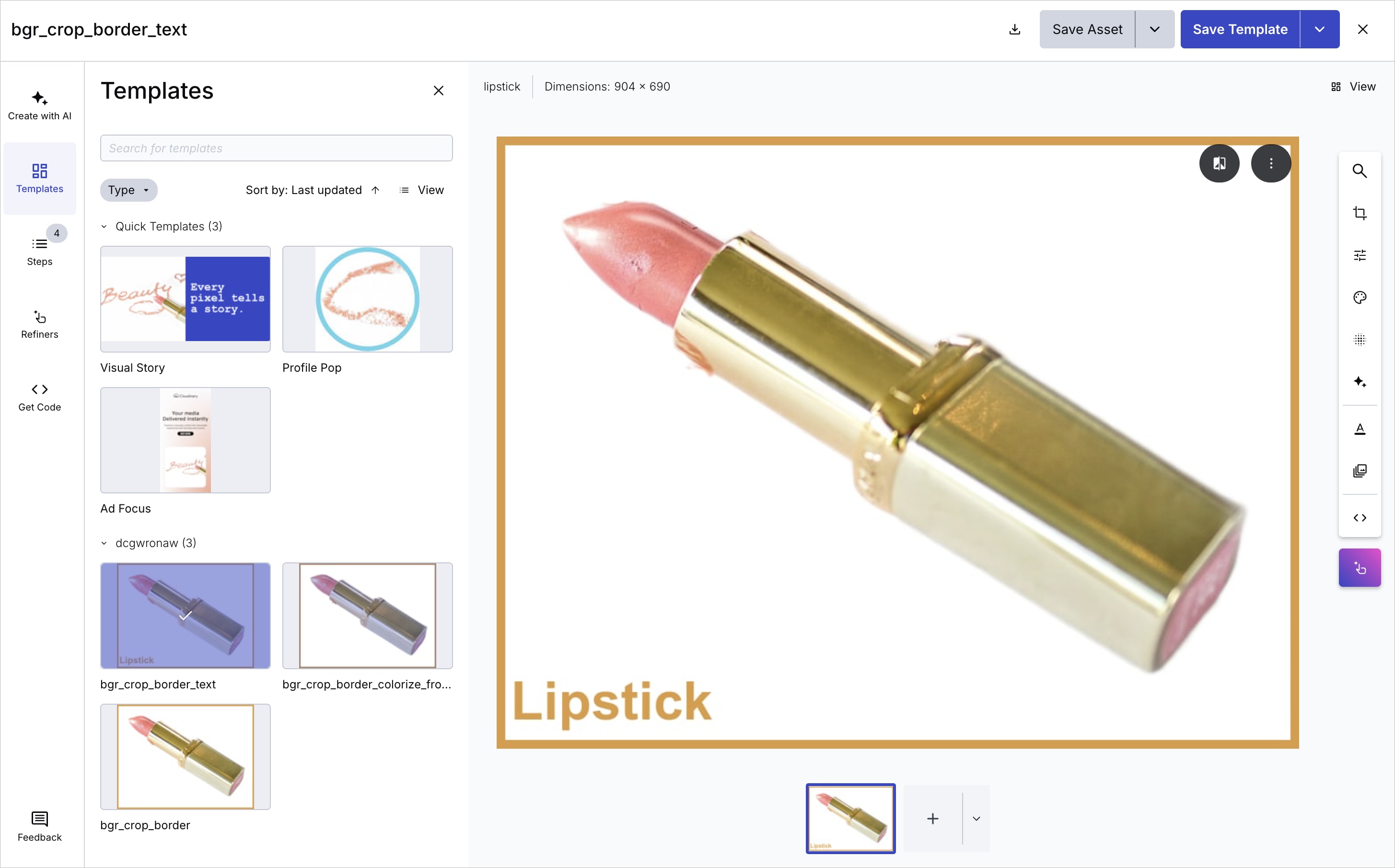 You can use this Studio to build transformations, save them as named transformations (also known as templates in this context), apply them to one or more images, and refine AI-generated versions of images.