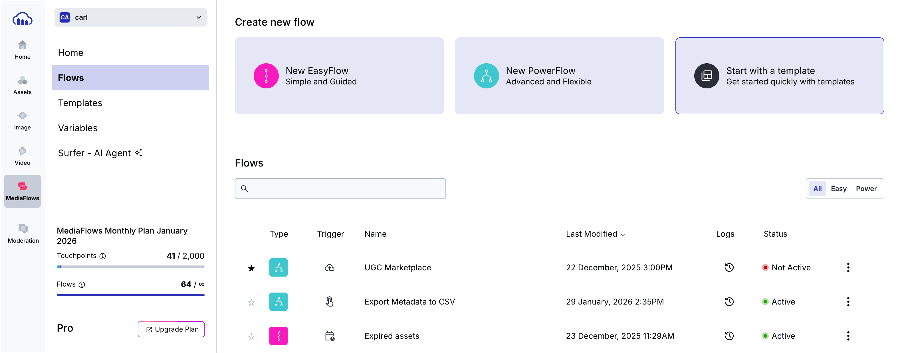 To start using MediaFlows, you need an active Cloudinary account. If you don't have one, sign up here for free.
