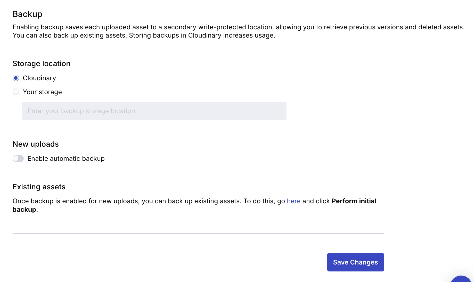 There's now a new and improved UI for backing up new uploads and existing assets.