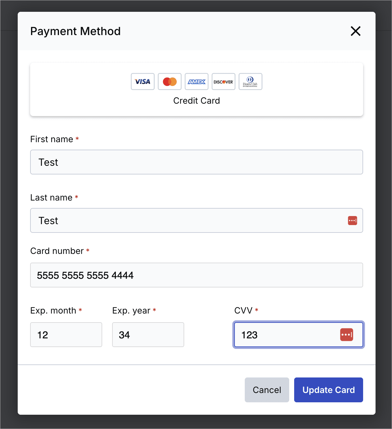 You will then be able to update your credit card details: